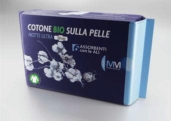 Assorbente notte ultra con ali 320 mm Cotone BIO sulla pelle confezionato singolarmente in bag apri&chiudi 6 pezzi