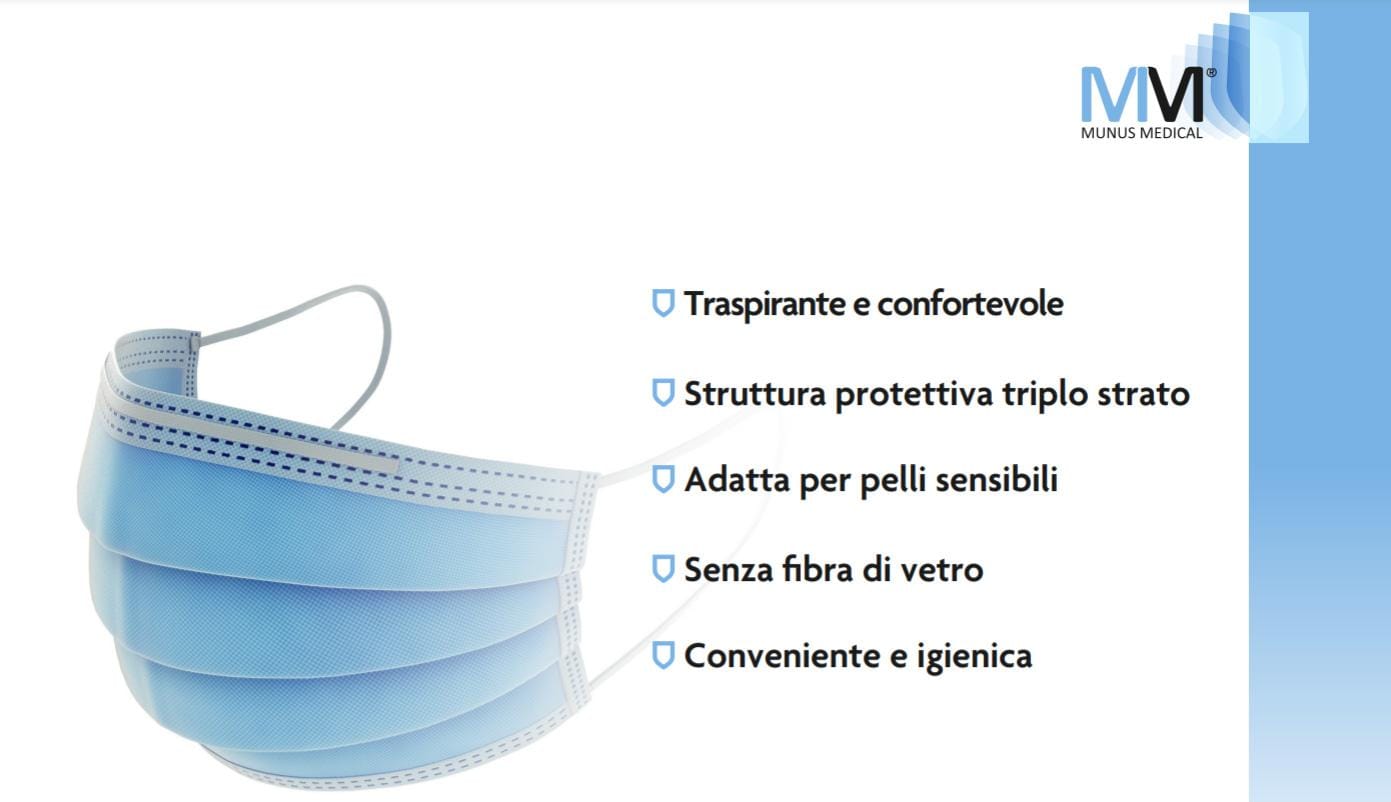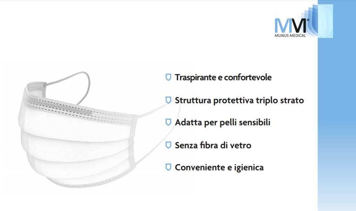 Il Dispositivo Medico oggetto di questa presentazione è una mascherina non sterile in 3 strati, priva di lattice, anatomica, destinata a essere indossata dagli operatori sanitari durante un'attività medica o altre attività in ambito sanitario o da altri utilizzatori, in altri ambienti, al fine di evitare la dispersione di agenti patogeni (quali ad esempio batteri o virus) dispersi in goccioline liquide (droplets) e aerosol che possono fuoriuscire dalla bocca e dal naso di chi le indossa.
