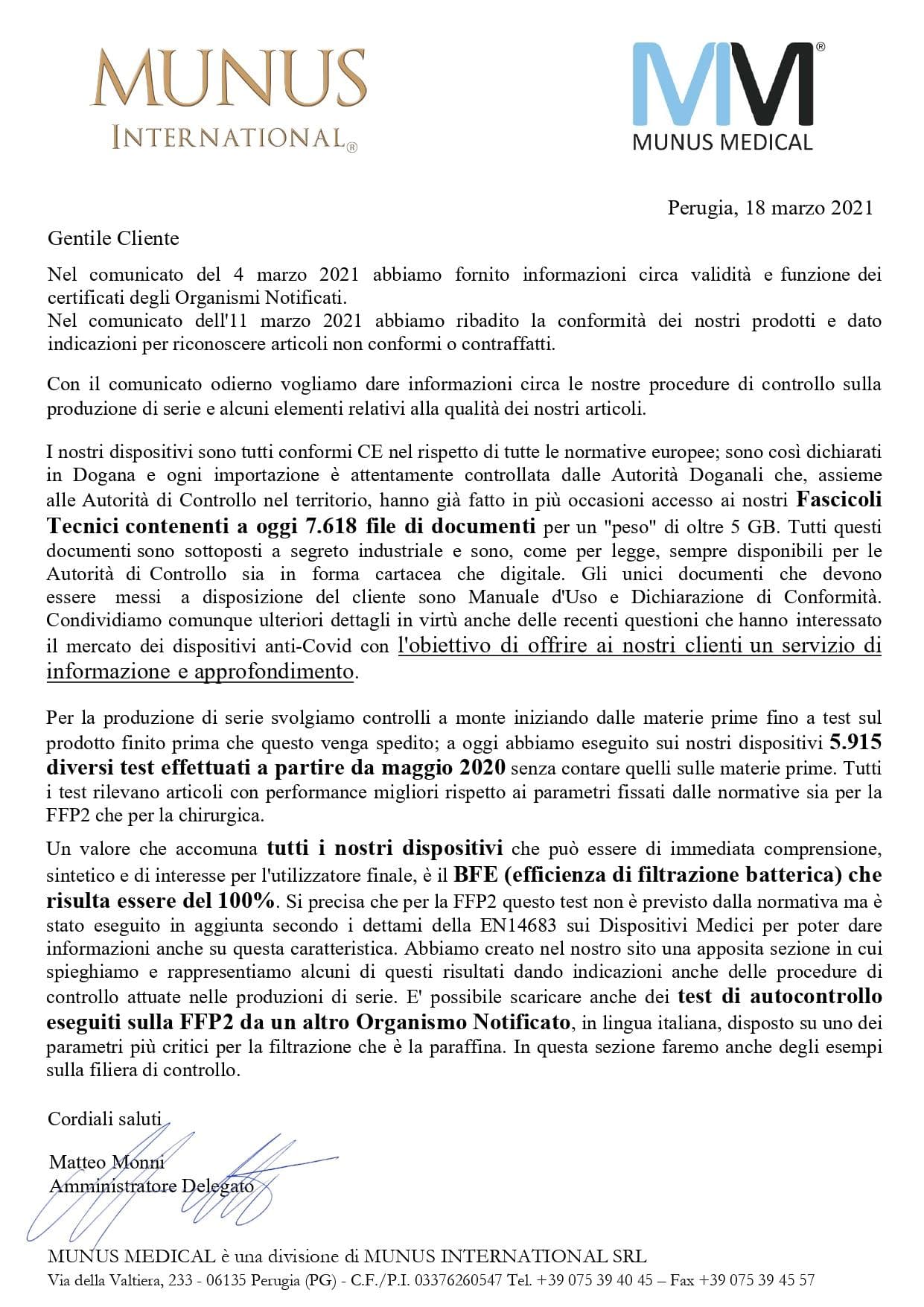 Il respiratore FFP2 NR modello MM-1 è un Dispositivo di Protezione Individuale di Classe III e, come previsto dalle normative, la nostra società gestisce apposito fascicolo tecnico nel rispetto di tutte le direttive europee e degli obblighi per una regolare marcatura CE. Ai seguenti link, LINK, è possibile scaricare Dichiarazioni di Conformità e manuali d’uso.