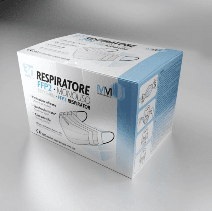 Ogni respiratore è unisex, in taglia unica e confezionato in busta serigrafata singola contenente manuale d’uso con dichiarazione di conformità integrata in bustina separata per evitare che il manuale entri a contatto diretto con il Dispositivo. Questo speciale packaging consente all’utilizzatore di avere sempre a disposizione il manuale per un corretto uso del Dispositivo. Questa singola confezione può inoltre essere una singola unità di vendita corredata con tutto ciò che la legge prevedono le normative di riferimento.